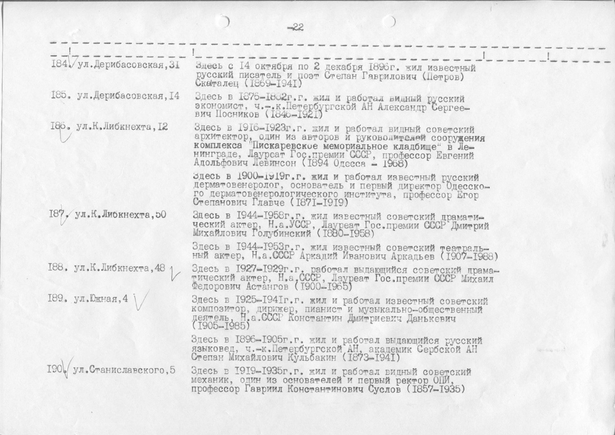 Приложение к решению исполкома Одесского областного Совета народных депутатов № 652 от 25.12.1984 (оригинальная редакция), ч. 3, с. 22