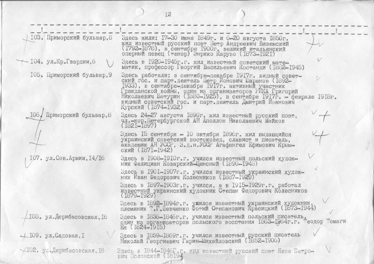 Одесса — Материалы по охране культурного наследия (Одесса и Одесская область)