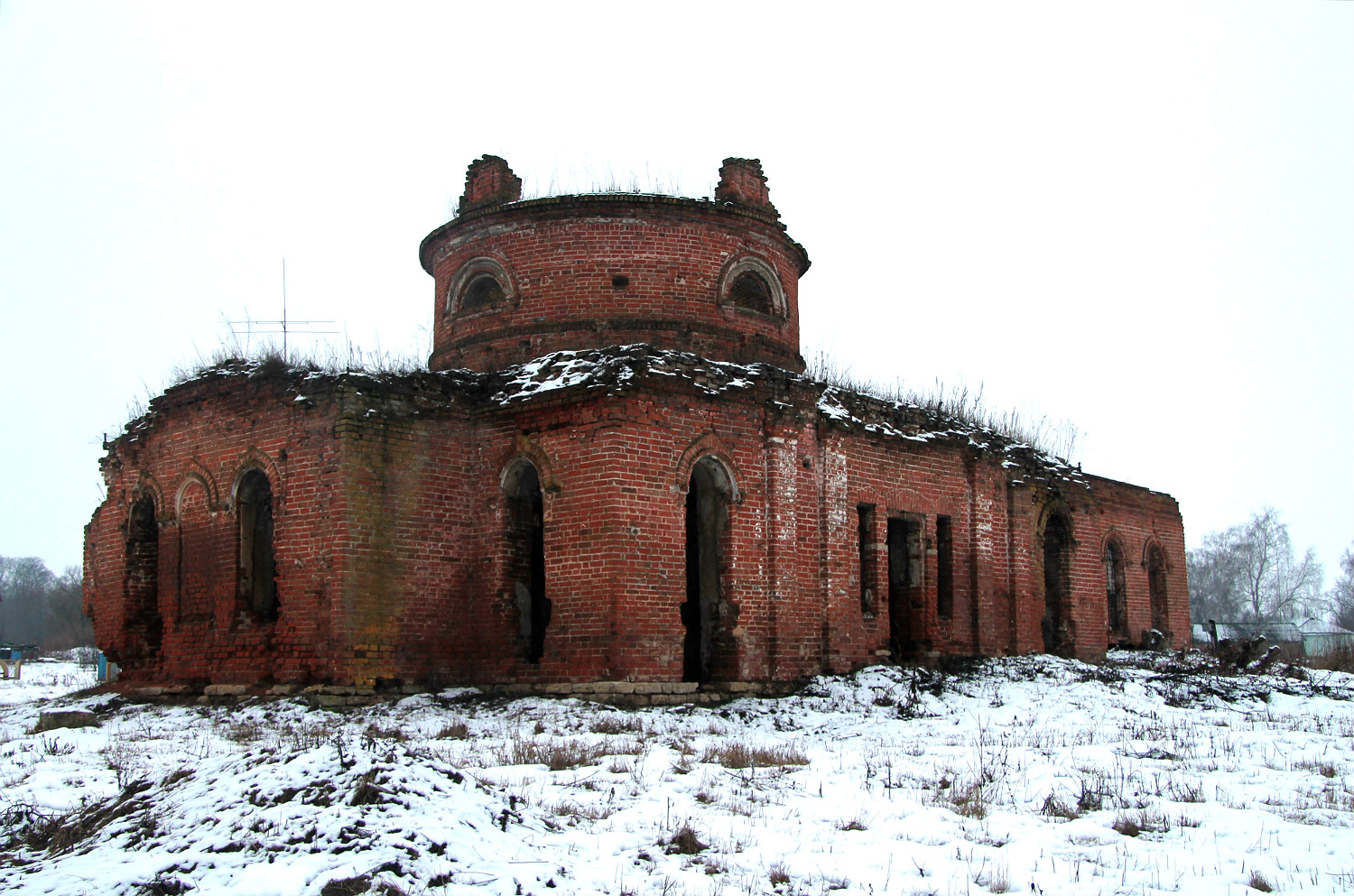 Кирпичная двухпрестольная церковь с колокольней (не сохр.) построена на средства местного владельца Лукина вместо прежней деревянной Архангельской церкви. Представляла собой ротонду на четверике, в колокольне устроен Георгиевский придел. В советское время закрыта, сломаны колокольня и завершения.