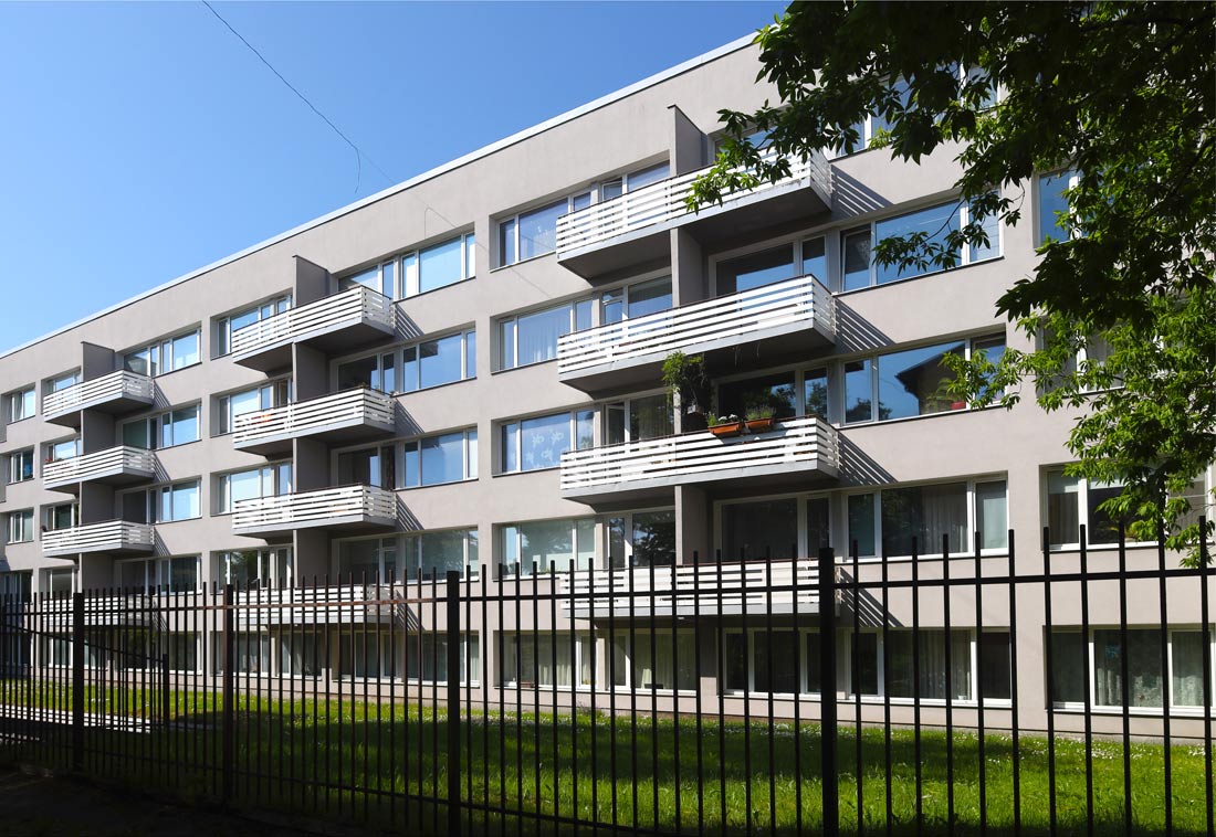 40 двух- и четырехкомнатных квартир. Жилая площадь 1 670 м², полезная площадь 3 520 м². Здание заполнило брешь на улице Юхкентали на южном фронте. С четким фасадным подходом: окна окна чередуются поясами, горизонтальный ритм которых оживляют шахматно расположенные окна лестничной клетки. Со стороны двора и торцевого фасада есть балконы. На каждом этаже секции по две квартиры, кухни расположены со стороны улицы, много кладовых. На цокольном этаже расположены общий холл с обслуживающей кухней, детская игровая, рабочие комнаты и фотокомната, овощехранилище, помещения для хранения детских колясок и велосипедов. Со стороны лестничной клетки имеется мусорная шахта, на крыше – сушильные прачечные, а с южной стороны – терраса на крыше. Фасады покрыты темной напыляемой штукатуркой, балконные ограждения из горизонтальных досок светлые. На цокольной стороне двора есть крытые гаражи.