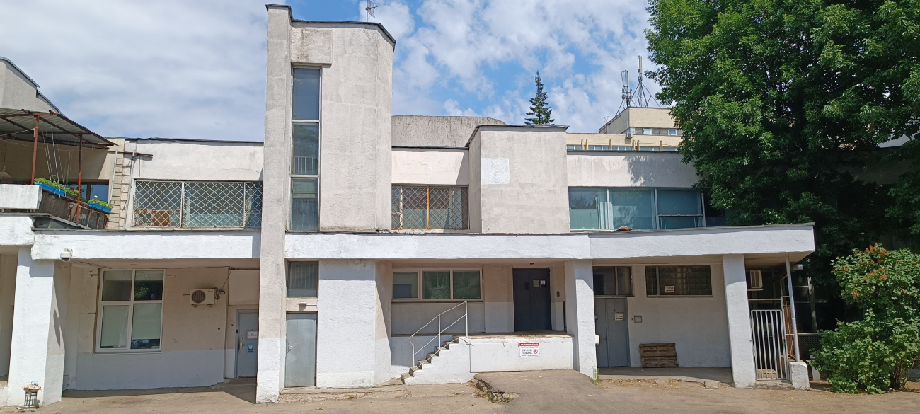 Проект проектного института "Минскпроект". В 1973-75 гг. были пристроены спортивный зал с бассейном и столовая, в 1977-80 гг. — новый восьмиэтажный лабораторный корпус со столовой. Уменьшены оконные проёмы бассейна.